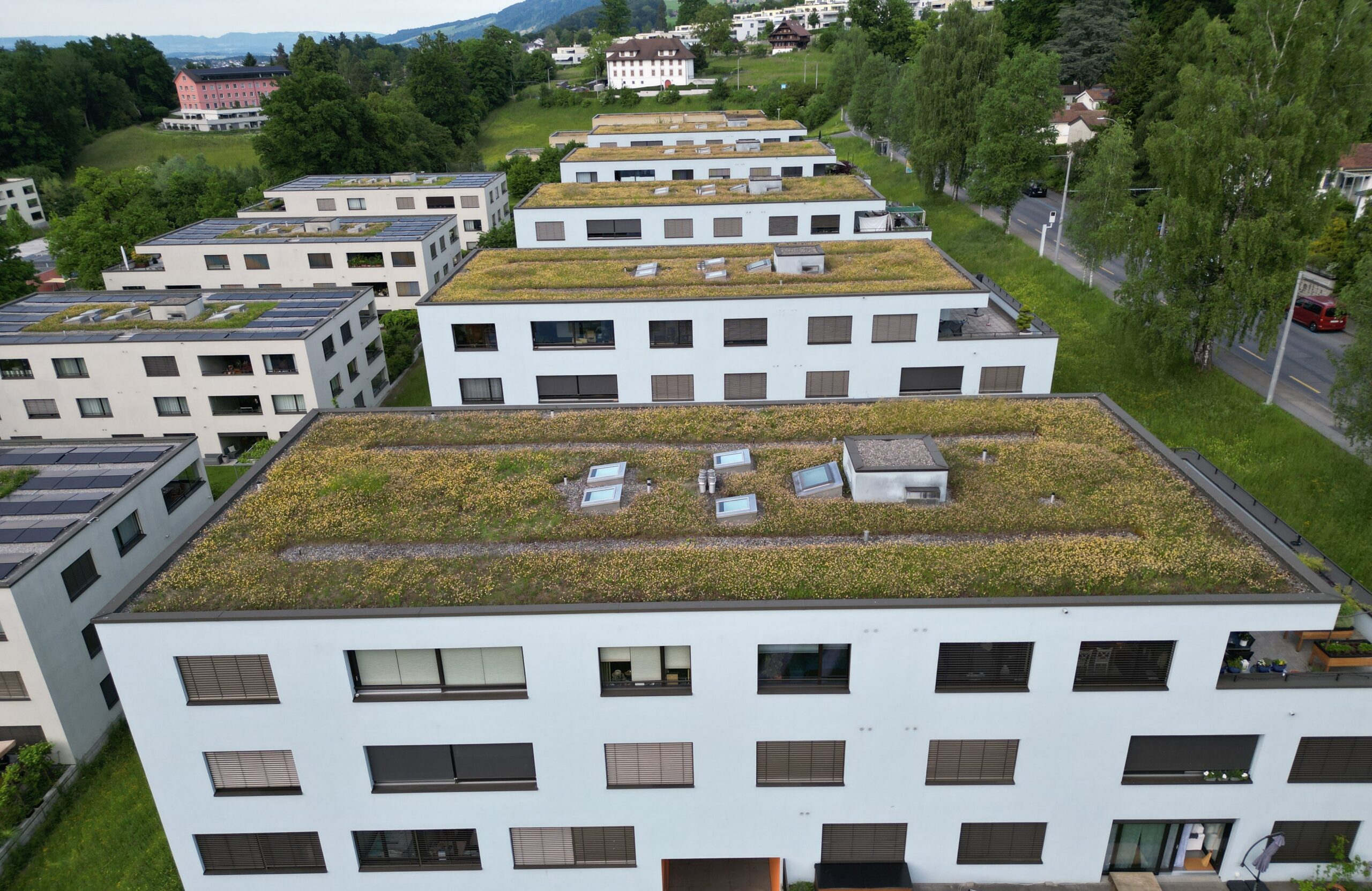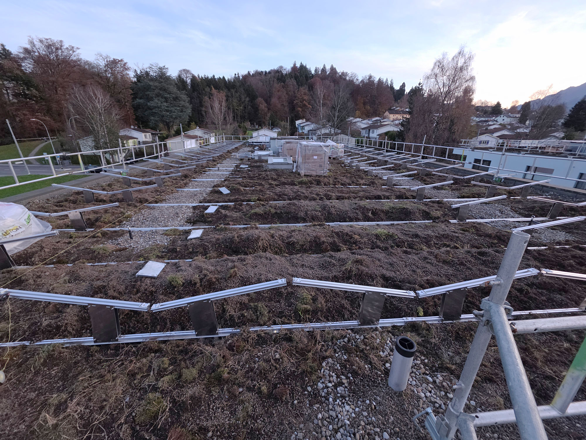 Wir freuen uns auf der Überbauung der katholischen Kirche Luzern in der Unterlöchlistrasse 1-9 unsere nächste Photovoltaikanlage realisieren zu dürfen. Die Anlage hat eine Gesamtleistung von 270 kWp. Die Grün-Flachdächer haben eine aufgeständerte Ost/West-Konstruktion erhalten, ähnlich wie bei unserer ersten